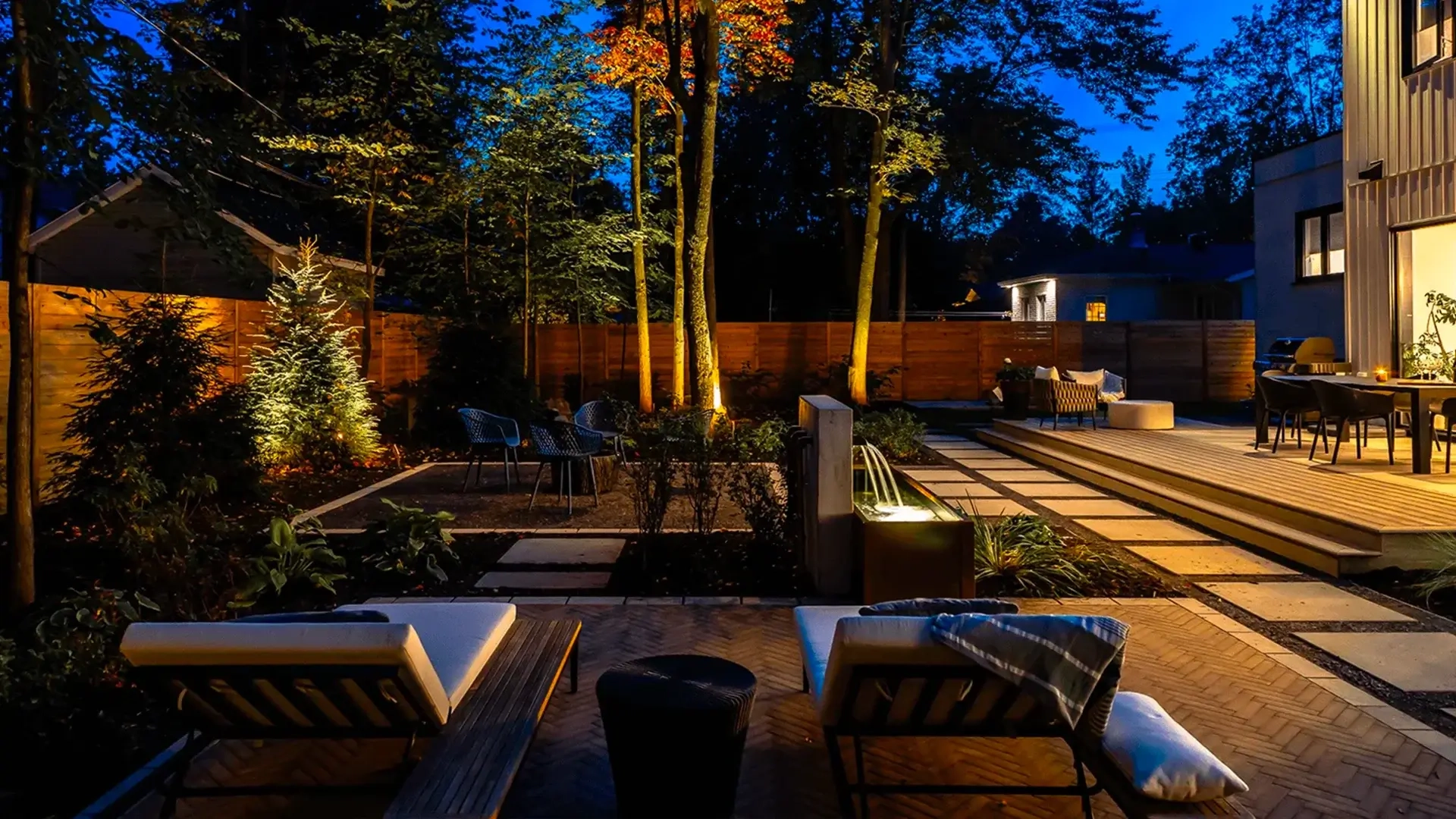 Nos architectes ne dessinent pas seulement des plans, ils conçoivent des ambiances. L’exploration des matières et des textures est essentielle : pierre naturelle, porcelaine, pavé uni, acier corten… Chaque matériau dialogue pour structurer l’espace avec profondeur et caractère. Les plantations, soigneusement sélectionnées, parachèvent l’ensemble et insufflent une atmosphère vivante et évolutive.