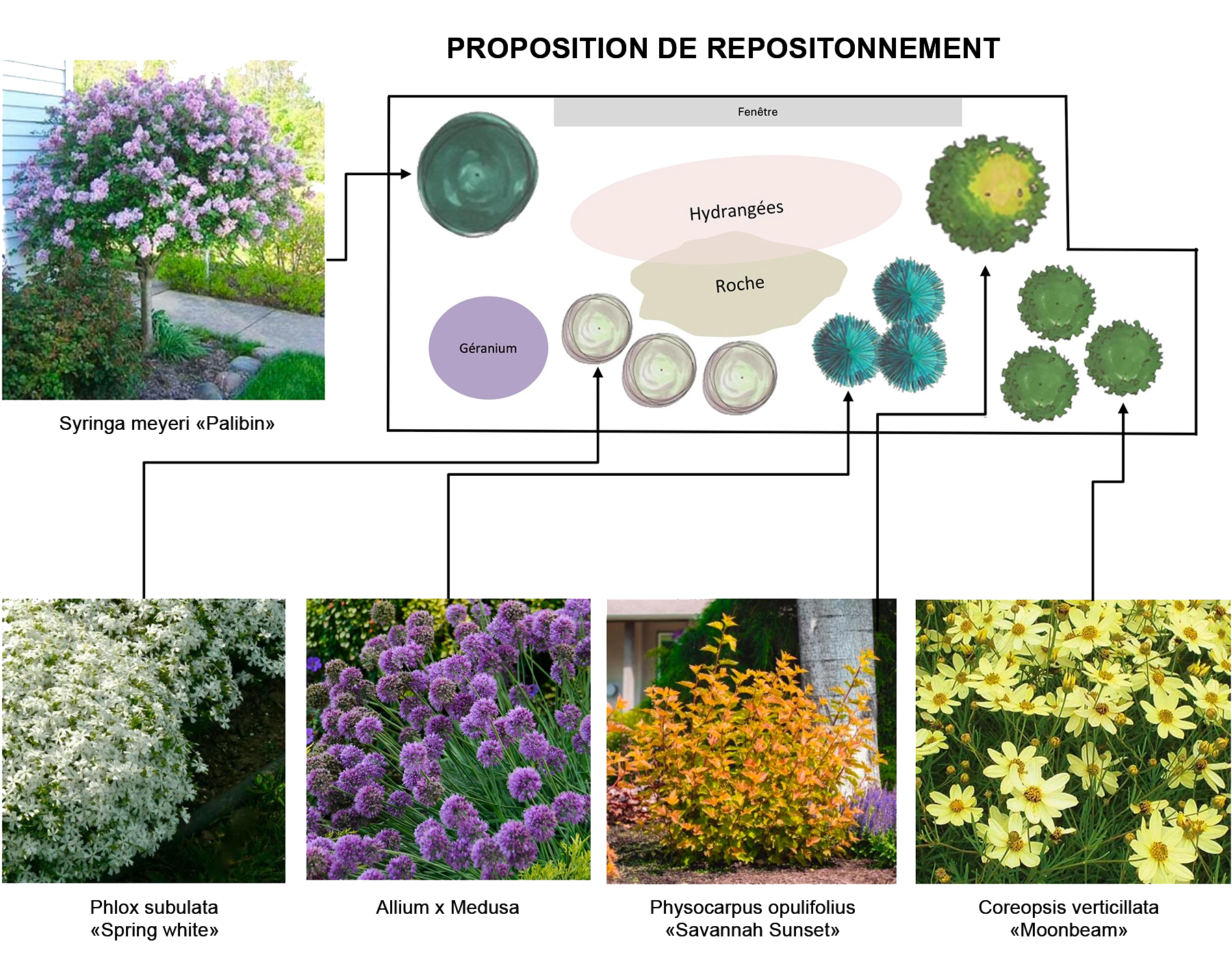 Pour y parvenir, nous vous présentons une proposition visuelle incluant nos recommandations de végétaux et leur emplacement.