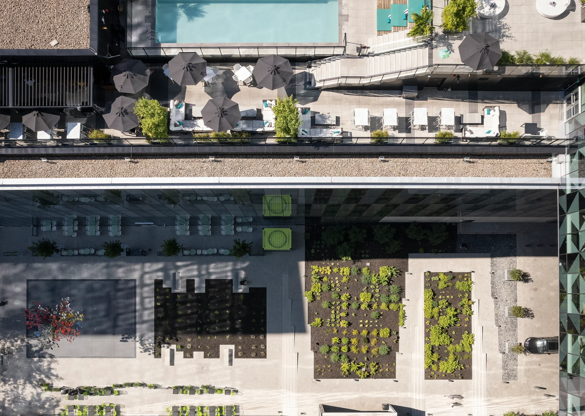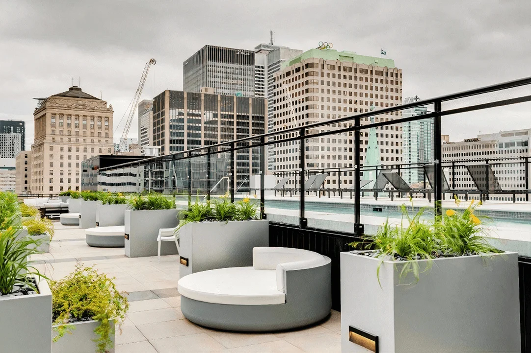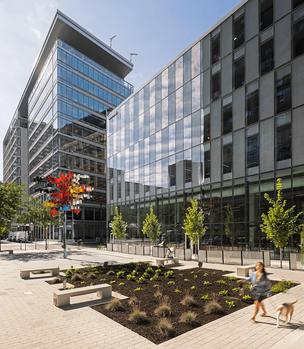 Implanté au cœur du quartier international de Montréal, ce projet d’envergure révèle l’expertise de nos équipes. Le paysage créé reflète l’audace architecturale des deux bâtiments. Doté d’un plan d’eau central, d’une vaste zone pavée pour une circulation fluide et des espaces de repos, ainsi que des terrasses accueillantes sur les toits, cet aménagement offre une expérience sensorielle et culturelle unique. Ce design innovant captivera ceux qui s’aventurent dans la grande métropole, dévoilant une vision créative et contemporaine du paysage urbain.